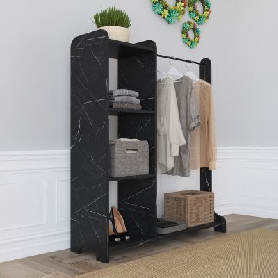 21. Έπιπλο εισόδου Renesme pakoworld σε μαύρο με όψη μαρμάρου 106x45x128εκ