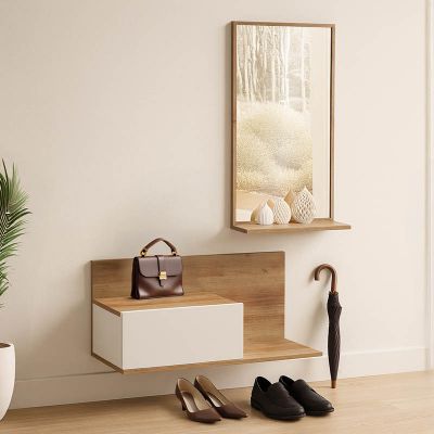 Έπιπλο εισόδου με καθρέπτη Miranda pakoworld σε λευκή-oak απόχρωση 60x30x89.5εκ