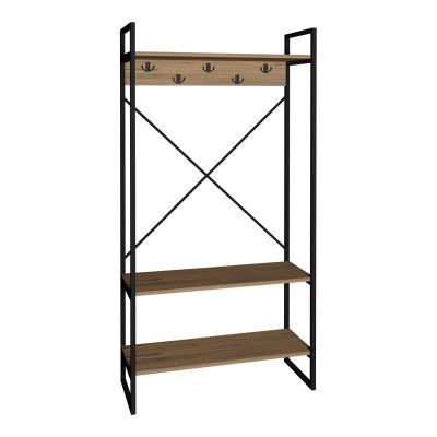 Έπιπλο εισόδου Feranda pakoworld με ράφια oak με μαύρο μεταλλικό σκελετό 88x34x180εκ