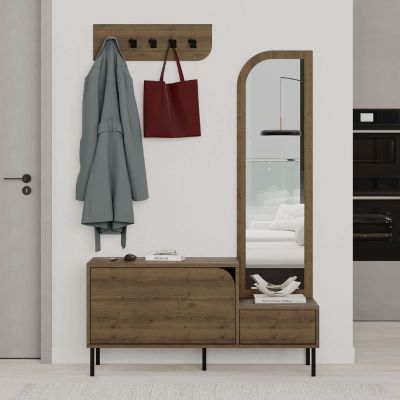 3. Έπιπλο εισόδου Mila Megapap με κρεμάστρα χρώμα ανοιχτό καρυδί 120x37x171,6εκ.