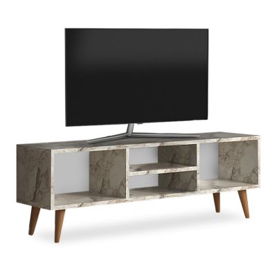 7. Έπιπλο τηλεόρασης Loren Megapap από μελαμίνη χρώμα λευκό εφέ μαρμάρου 120x30x40εκ.