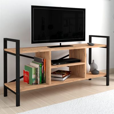 11. Έπιπλο τηλεόρασης Santana Megapap μεταλλικό - μελαμίνης χρώμα μαύρο - pine oak 120x35x61εκ.