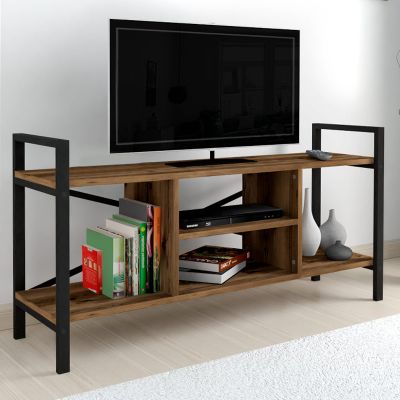 13. Έπιπλο τηλεόρασης Santana Megapap μεταλλικό - μελαμίνης χρώμα μαύρο - καπνιστή καρυδιά 120x35x61εκ.