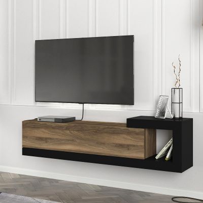 Έπιπλο τηλεόρασης επιτοίχιο Volare Megapap χρώμα καρυδί - μαύρο 150x29,6x38,6εκ.
