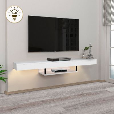 21. Έπιπλο τηλεόρασης επιτοίχιο Albares Megapap από μελαμίνη με LED χρώμα λευκό 150x29,6x22εκ.