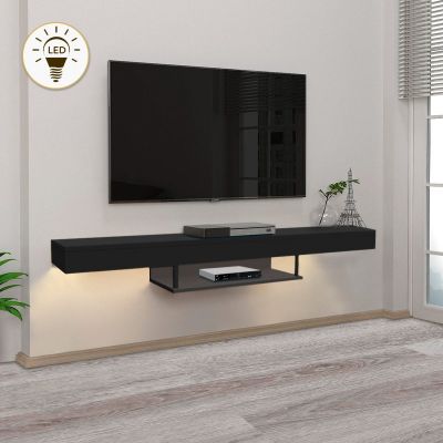 19. Έπιπλο τηλεόρασης επιτοίχιο Albares Megapap από μελαμίνη με LED χρώμα μαύρο 150x29,6x22εκ.