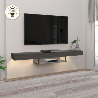 23. Έπιπλο τηλεόρασης επιτοίχιο Albares Megapap από μελαμίνη με LED χρώμα ανθρακί 150x29,6x22εκ.