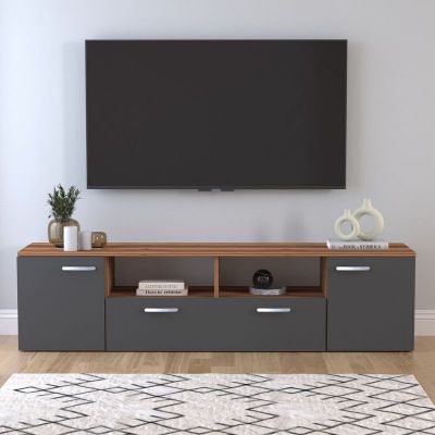23. Έπιπλο τηλεόρασης Girit Megapap χρώμα καρυδί - ανθρακί 181,3x41x46,2εκ.