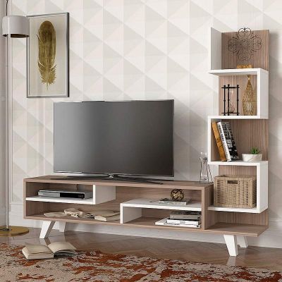 21. Έπιπλο τηλεόρασης Novara Megapap από μελαμίνη χρώμα λευκό - καρυδί 180x29,6x45εκ.