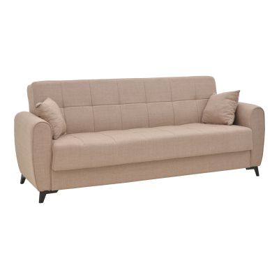 Καναπές-κρεβάτι με αποθηκευτικό χώρο τριθέσιος Lincoln pakoworld μπεζ ύφασμα 225x75x85εκ