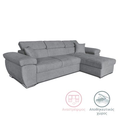 12. Γωνιακός καναπές-κρεβάτι αναστρέψιμος Comy pakoworld γκρι 286x160x75-90εκ