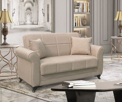 Καναπές-κρεβάτι με αποθηκευτικό χώρο διθέσιος Modesto pakoworld κρεμ ύφασμα 155x85x80εκ