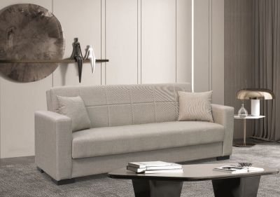 Καναπές-κρεβάτι με αποθηκευτικό χώρο διθέσιος Milos μπεζ-γκρι ύφασμα 148x78x85