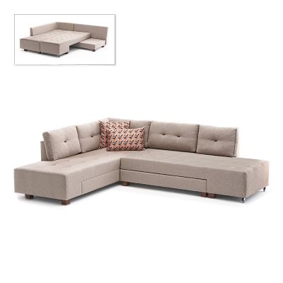 Γωνιακός καναπές - κρεβάτι Manama Megapap αριστερή γωνία υφασμάτινος χρώμα κρεμ 280x206x85εκ.