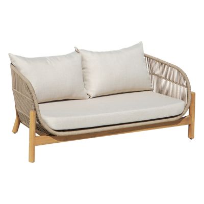 7. Καναπές διθέσιος Ytrone pakoworld rattan σε φυσική απόχρωση με μπεζ μαξιλάρι 166x61.5x71εκ