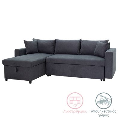 6. Γωνιακός καναπές-κρεβάτι αναστρέψιμος Lilian pakoworld ανθρακί 225x148x81εκ