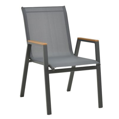 16. Πολυθρόνα Azelie pakoworld στοιβαζόμενη textilene ανθρακί-πόδι αλουμινίου ανθρακί-plywood μπράτσο 56x75x88εκ
