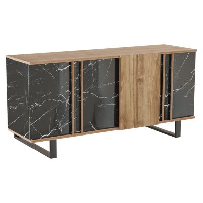 4. Μπουφές Milan Megapap χρώμα καρυδί - λευκό εφέ μαρμάρου 180x35x78,6εκ.