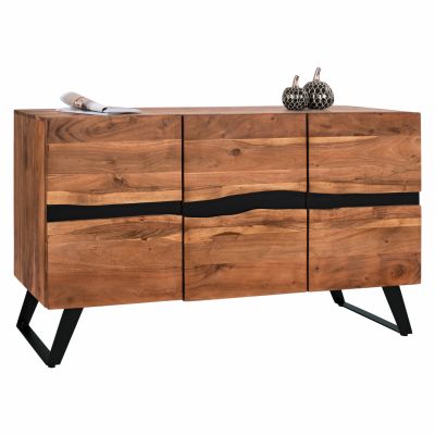 Μπουφές Imena pakoworld μασίφ ξύλο Acacia σε φυσική απόχρωση με μαύρα μεταλλικά πόδια 148x43.5x86εκ