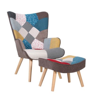 Πολυθρόνα Μπερζέρα Με Υποπόδιο ArteLibre BRIAR Patchwork Ύφασμα/Ξύλο 73x69x96cm