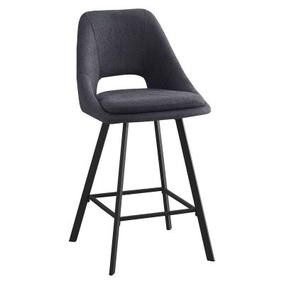 15. ΣΕΤ 2 TMX Σκαμπό μπαρ Initiate pakoworld ανθρακί ύφασμα-πόδι μαύρο μέταλλο 48x56x98εκ
