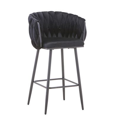 1. ΣΕΤ 2 TMX Σκαμπό μπαρ Velva pakoworld βελούδο σε μαύρη απόχρωση 46x45x113εκ