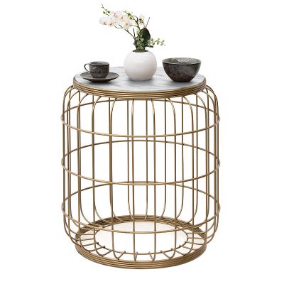 19. Σκαμπώ - τραπεζάκι βοηθητικό Muller Megapap μεταλλικό - Mdf χρώμα χρυσό - λευκό 35x35x47εκ.