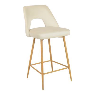 18. ΣΕΤ 2 TMX Σκαμπό μπαρ Murde pakoworld μπεζ βελούδο και μεταλλικά πόδια σε φυσική απόχρωση 47x52x96εκ
