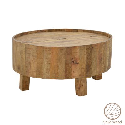 9. Τραπέζι σαλονιού με αποθηκευτικό χώρο Darian pakoworld μασίφ ξύλο mango φυσικό Φ90x45εκ