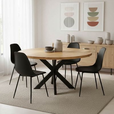 17. Τραπέζι Toda pakoworld mdf σε sonoma απόχρωση με μαύρα μεταλλικά πόδια Φ120x75εκ