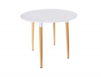 Τραπέζι Snow MDF λευκό και ξύλο οξιάς σε φυσική απόχρωση Φ100x73εκ