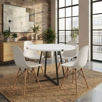 Σετ τραπεζαρία 5τμχ Rubes - Nova Megapap χρώμα λευκό - μαύρο Ø100x78εκ.