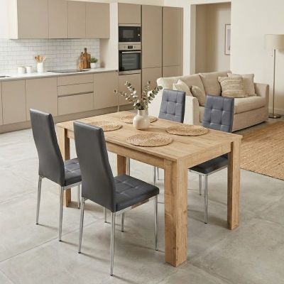 Σετ τραπεζαρία 5τμχ Darlen - Rosa Megapap χρώμα sapphire oak - γκρι 125x72x74εκ.