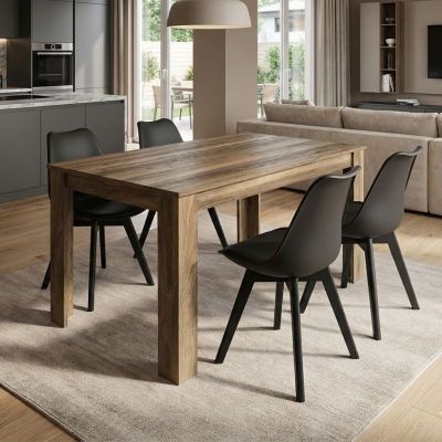 Σετ τραπεζαρία 5τμχ Darlen - Rosa Megapap χρώμα sapphire oak - μαύρο 125x72x74εκ.
