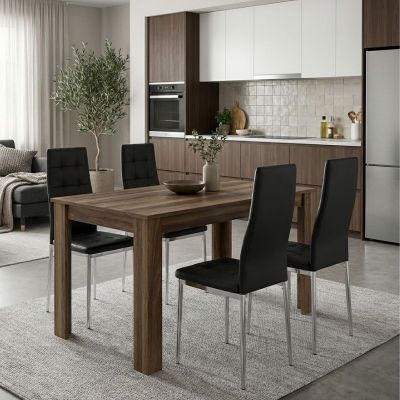 Σετ τραπεζαρία 5τμχ Darlen - Rosa Megapap χρώμα καρυδί - μαύρο/χρωμίου πόδι 125x72x74εκ.