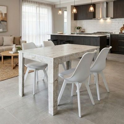 Σετ τραπεζαρία 5τμχ Darlen - Viva Megapap χρώμα λευκό εφέ μαρμάρου - λευκό 125x72x74εκ.