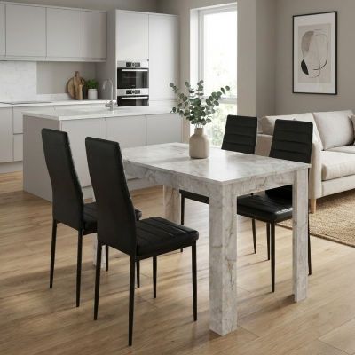 Σετ τραπεζαρία 5τμχ Darlen - Rosa Megapap χρώμα λευκό εφέ μαρμάρου - μαύρο 125x72x74εκ.
