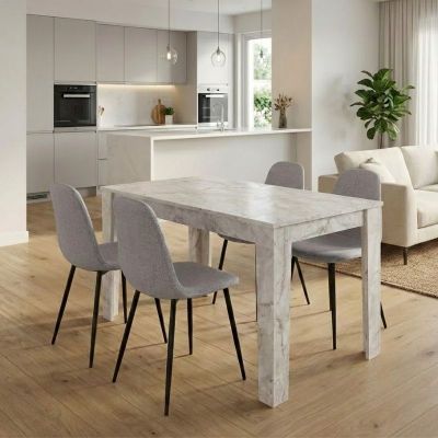 Σετ τραπεζαρία 5τμχ Darlen - Iris Megapap χρώμα λευκό εφέ μαρμάρου - γκρι 125x72x74εκ.