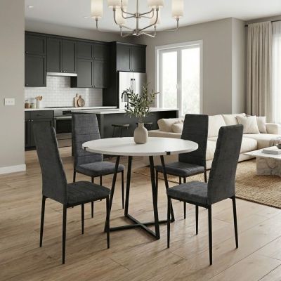 Σετ τραπεζαρία 5τμχ Rubes - Rosa Megapap χρώμα λευκό - μαύρο Ø100x78εκ.