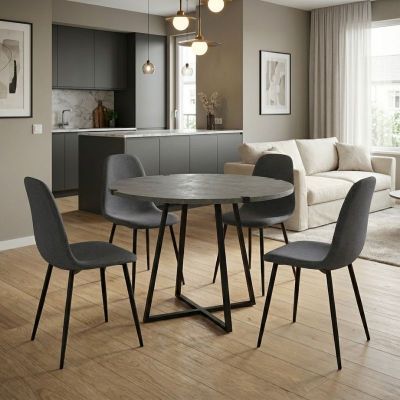 Σετ τραπεζαρία 5τμχ Rubes - Iris Megapap χρώμα γκρι σκυροδέματος - γκρι Ø100x78εκ.