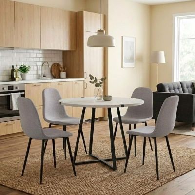 Σετ τραπεζαρία 5τμχ Rubes - Iris Megapap χρώμα λευκό - γκρι Ø100x78εκ.