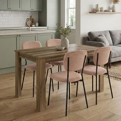 Σετ τραπεζαρία 5τμχ Allos - Kevin Megapap χρώμα sapphire oak - μουσταρδί 75x75x77εκ.