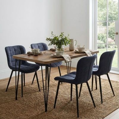 Σετ τραπεζαρία 5τμχ Roger - Christy Megapap Mdf - ύφασμα χρώμα ακακίας - ανθρακί 120x70x75εκ.