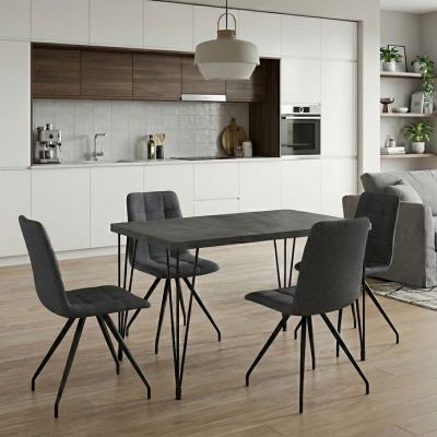 Σετ τραπεζαρία 5τμχ Roger - Chiara Megapap Mdf - ύφασμα χρώμα σκούρο γκρι σκυροδέματος - ανθρακί 120x70x75εκ.