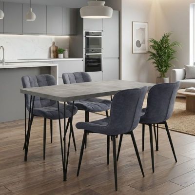 Σετ τραπεζαρία 5τμχ Roger - Bianca Megapap Mdf - ύφασμα χρώμα σκούρο γκρι σκυροδέματος - γκρι 120x70x75εκ.