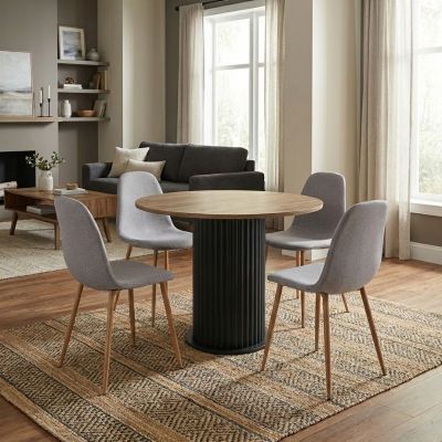 Σετ τραπεζαρία 5τμχ Bohema - Iris Megapap χρώμα μαύρο/sepet oak - γκρι/φυσικό πόδι Ø90x77,7εκ.