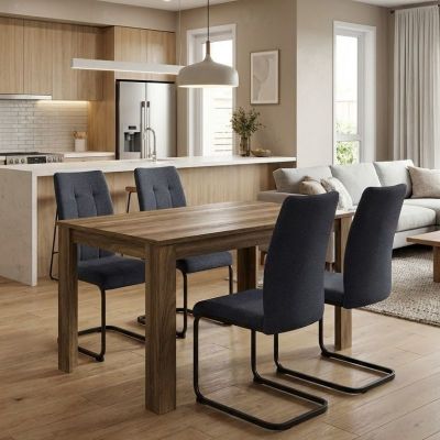 Σετ τραπεζαρία 5τμχ Darlen - Laura Megapap χρώμα sapphire oak - ανθρακί 125x72x74εκ.