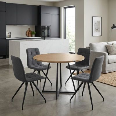 Σετ τραπεζαρία 5τμχ Rubes - Bianca Megapap χρώμα φυσικό οξιάς - γκρι Ø100x78εκ.