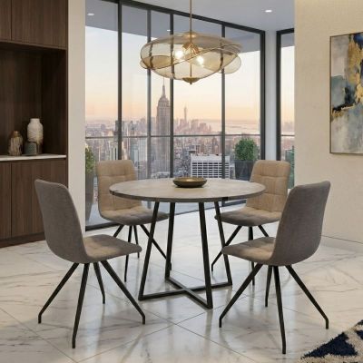 Σετ τραπεζαρία 5τμχ Rubes - Bianca Megapap χρώμα γκρι σκυροδέματος - ανοιχτό μπεζ Ø100x78εκ.