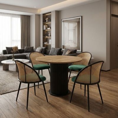Σετ τραπεζαρία 5τμχ Bohema - Chiara Megapap χρώμα μαύρο/sepet oak - πράσινο Ø90x77,7εκ.